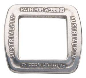 AustriAlpin Rahmenflachschnalle 25mm Material: Aluminium Länge: 42 mm Breite: 40 mm Höhe: 4 mm Bruchkraft Umreifung: 15 kN Gewicht: 10 g pro Stück