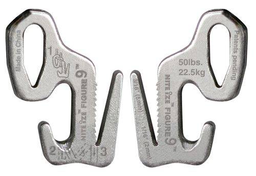 Nite Ize Figure 9 Rope Tightener - Small Größe: 30 mm x 38 mm x 3 mm Material: Aluminium Gewicht: 3,0 g pro Stück Kapazität: 22,5 kg